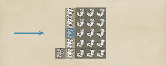 When a formed unit of any type (be it Close Order, Open Order and so on) charges a unit of Skirmishers, it must endeavour to move as directly as possible into contact with the closest visible model in the target unit. As usual, the charging unit may wheel once, at any point, during its move, as shown in Fig 186.3.